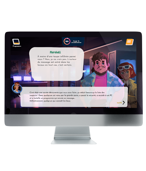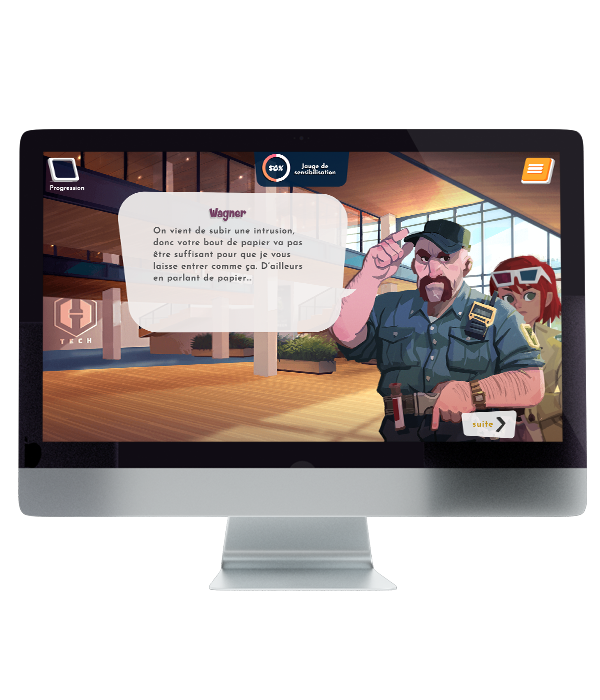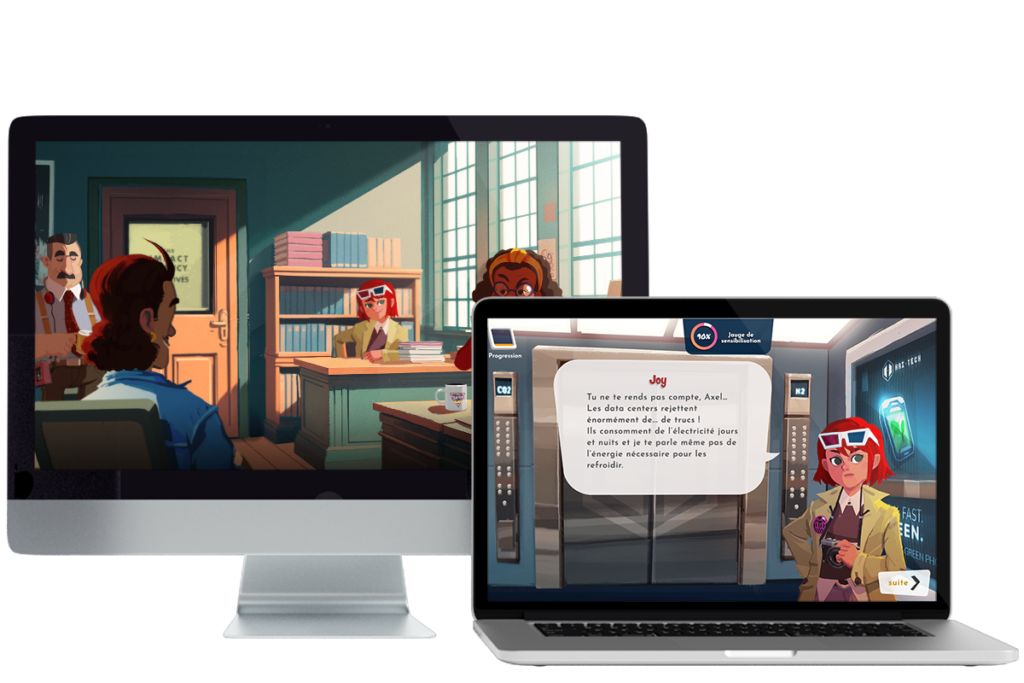 Nous avons associé notre expertise à celle de Digital for better pour concevoir ce serious game destiné à sensibiliser les salariés aux impacts du numérique. Dans cet épisode de The Impact Agency, le joueur va incarner à tour de rôle trois membres de l’équipe ayant différents niveaux de sensibilisation au numérique responsable (débutant, intermédiaire et expert). Par de multiples mises en situation et différents points de vue, le joueur pourra prendre du recul et engager une vraie réflexion autour de la question du numérique responsable. Facile à prendre en main, créant l’émulation entre les collaborateurs, The Impact Agency – Numérique responsable est un outil original de sensibilisation à la sobriété numérique.
